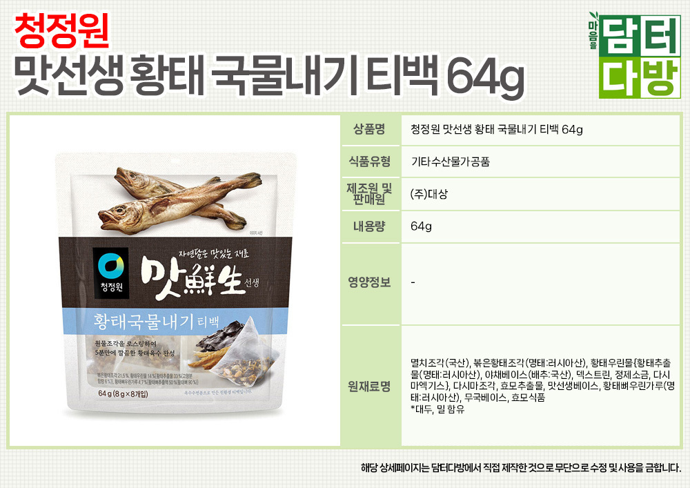 청정원 맛선생 황태 국물내기 티백 64g X 3개