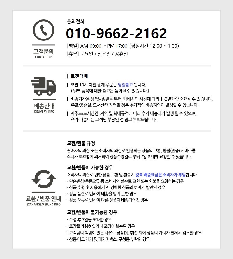 상품의 불량 또는 오배송 고객 부담이 아닙니다.