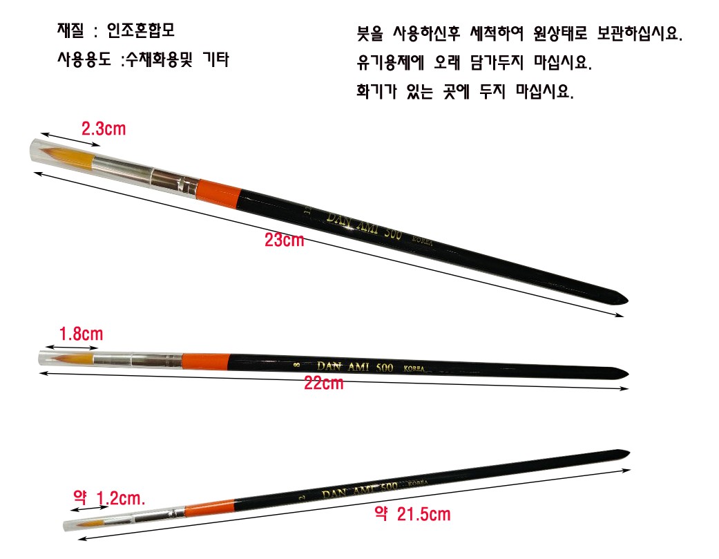 (DA) 단아미 500R 3본조(3조세트/미술붓세트/수채화붓)