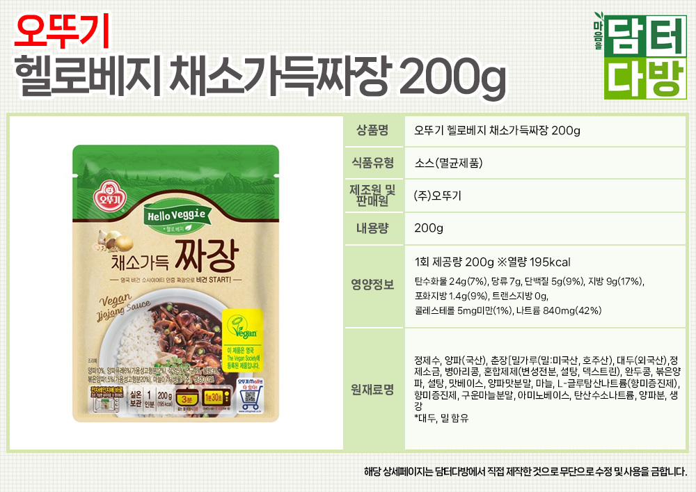 오뚜기 헬로베지 채소가득짜장 200g X 5개