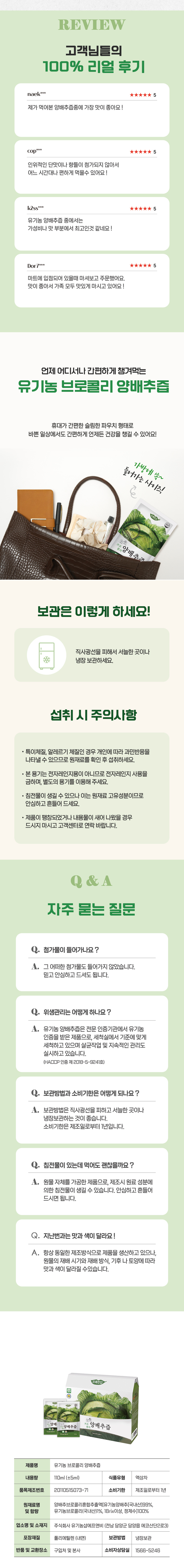 | 제품명 | 유기농 브로콜리 양배추즙 |