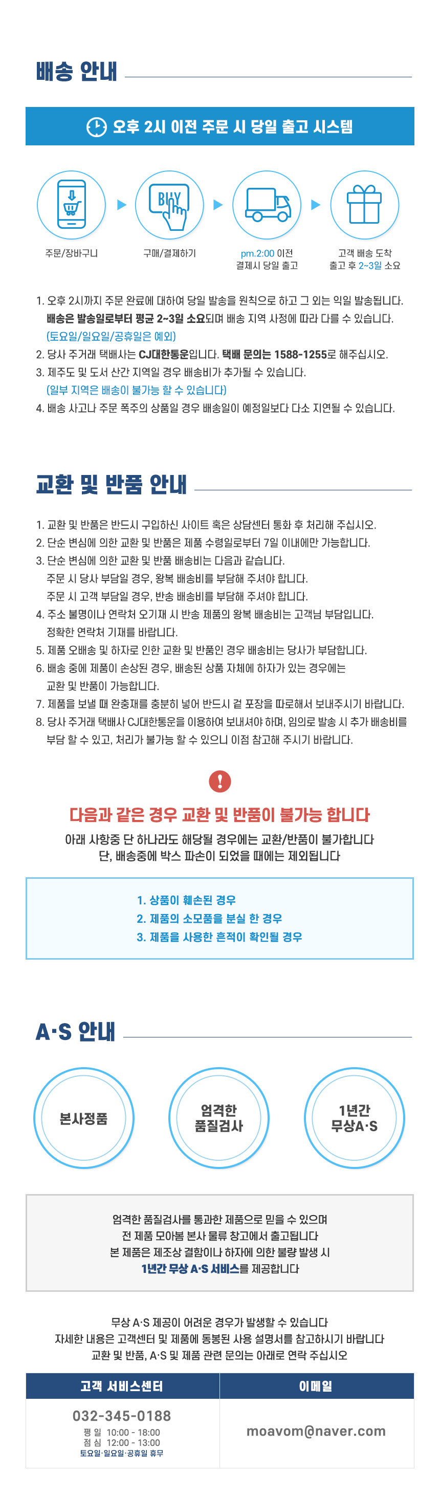 • 배송리드타임14시 이전 주문건 까지 당일 이내 발송