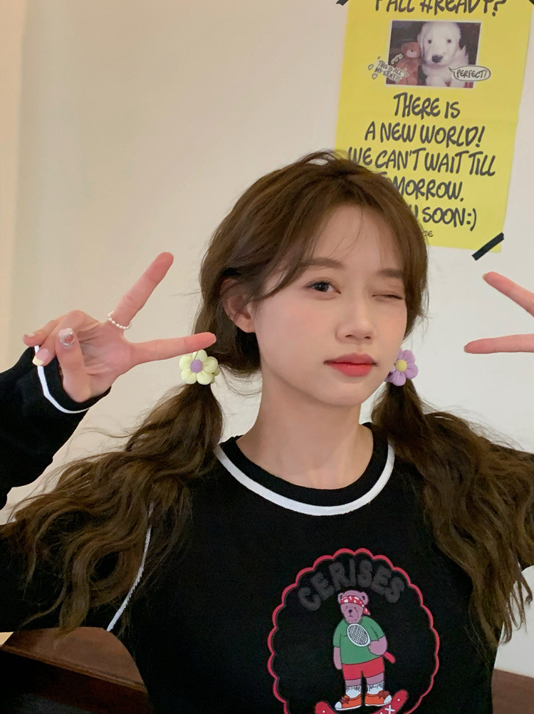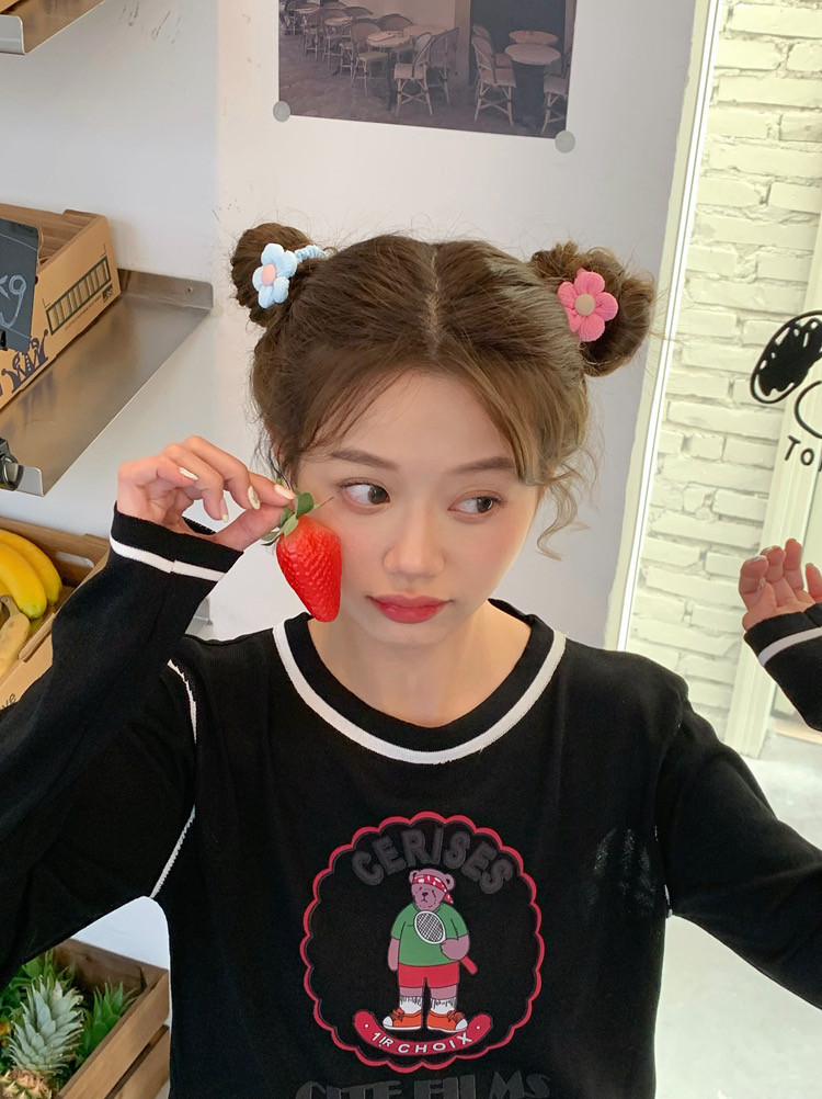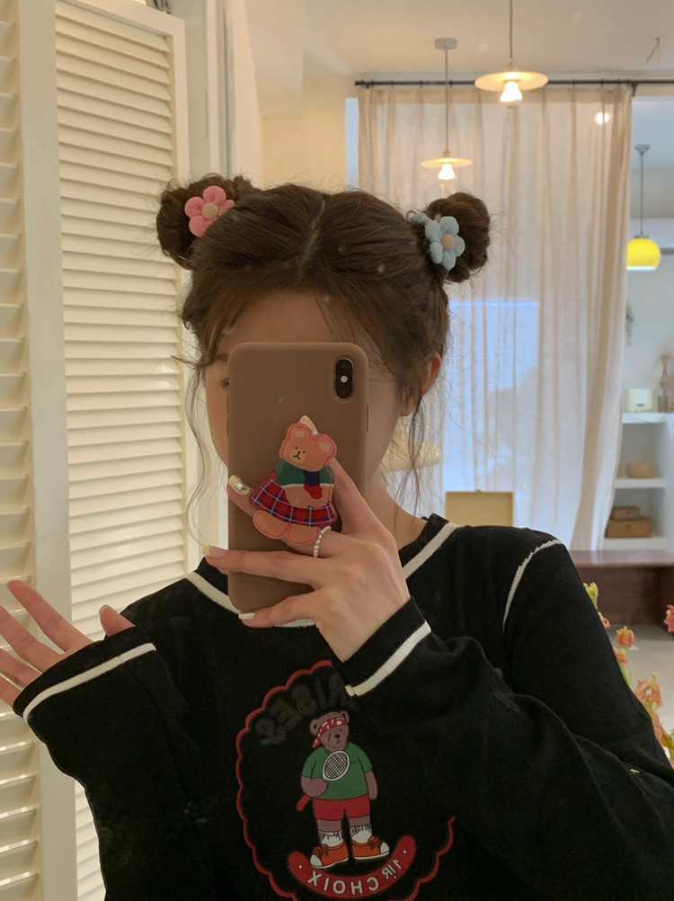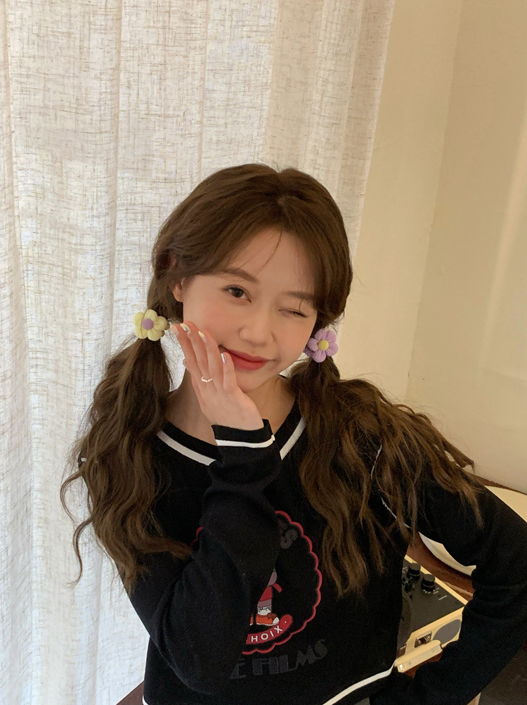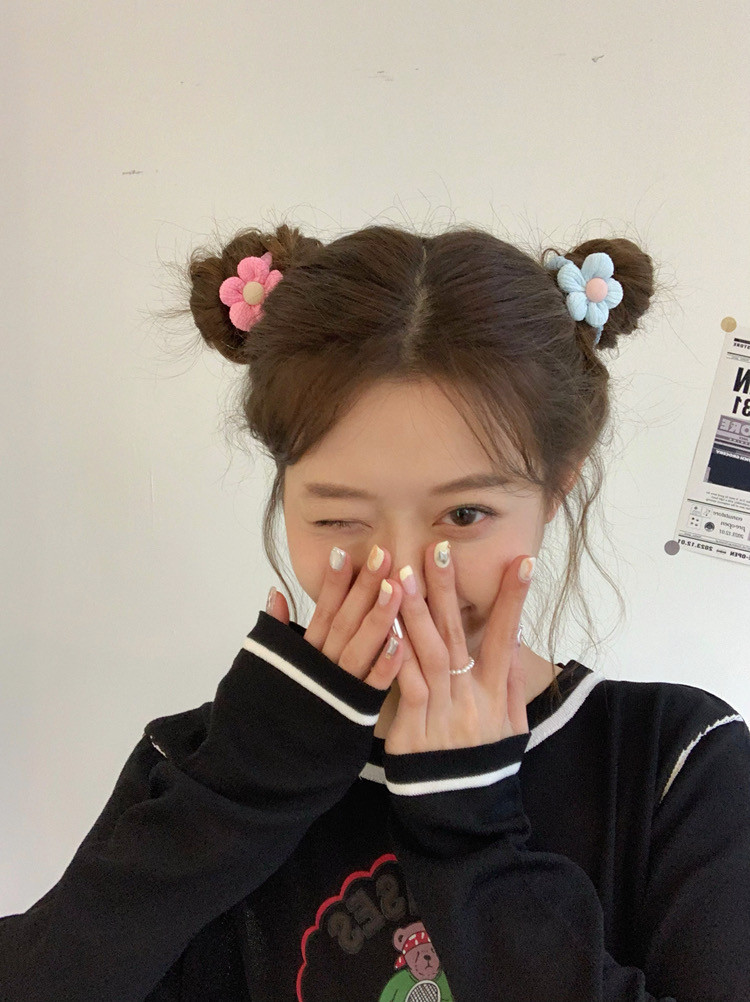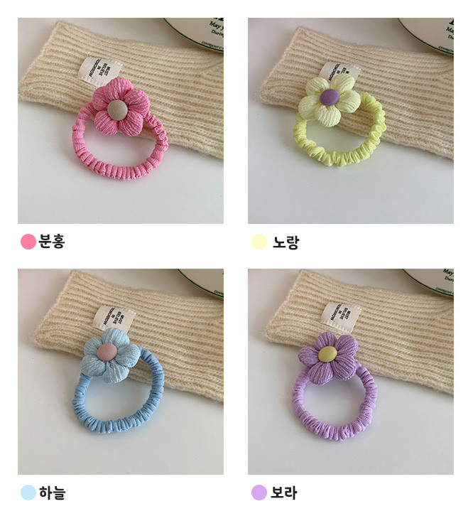 러블리 꽃 플라워 컬러끈 양갈래 머리끈