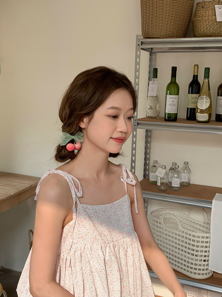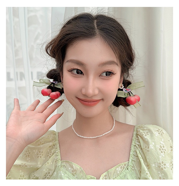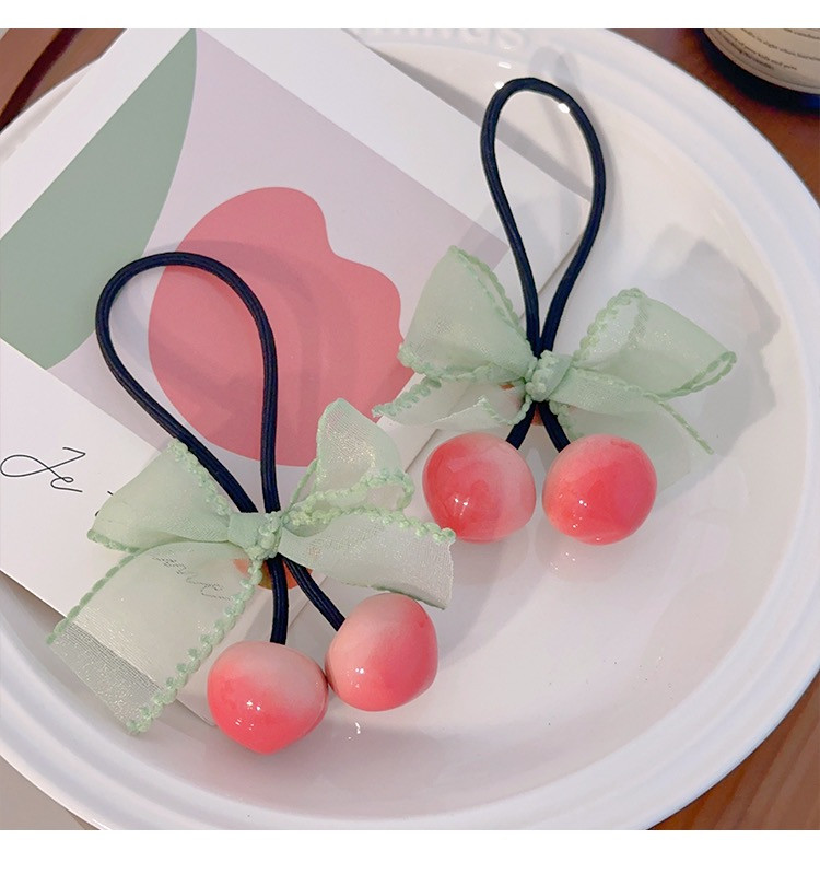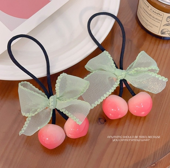 체리 레이스 리본 머리끈 양갈래 고무줄 끈