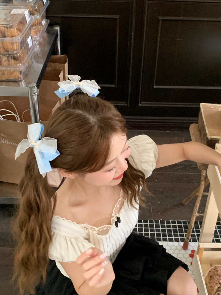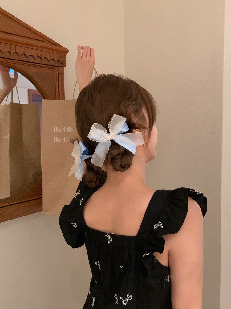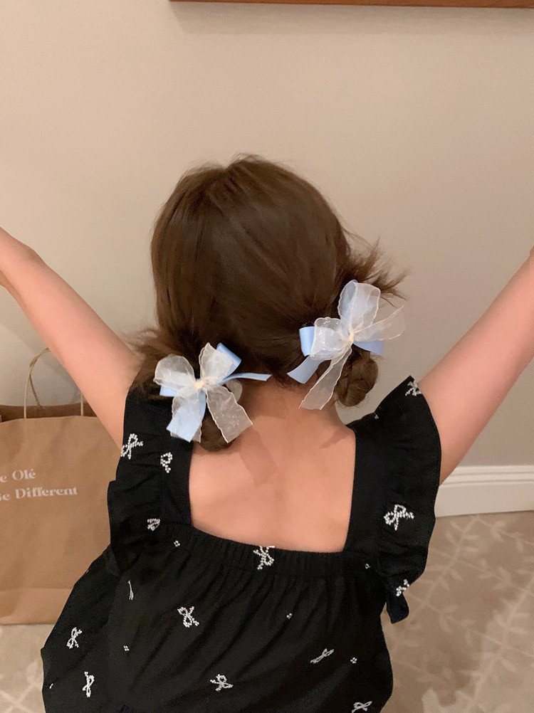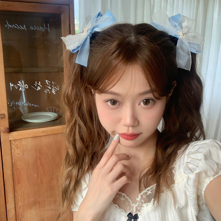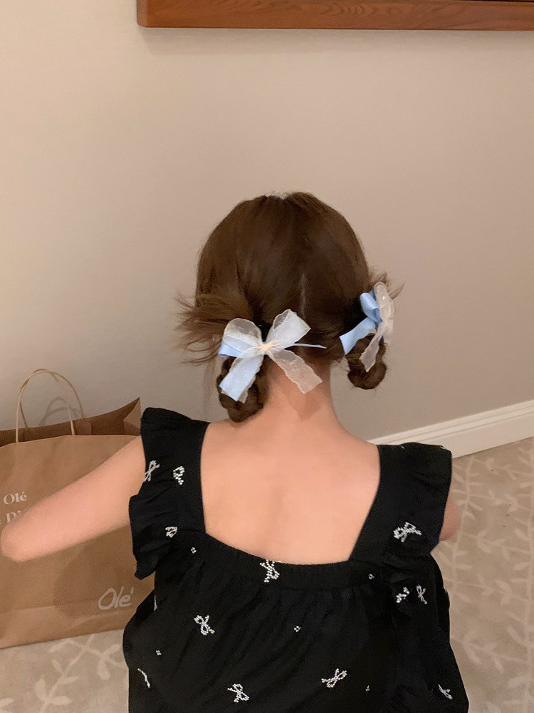 블루 리본 레이스 머리핀 양갈래 헤어핀