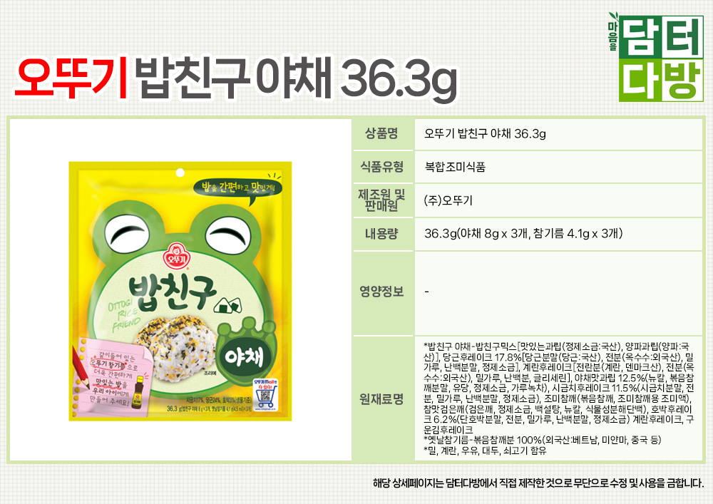 유전자재조합식품의 경우 표시 상세설명페이지 참고