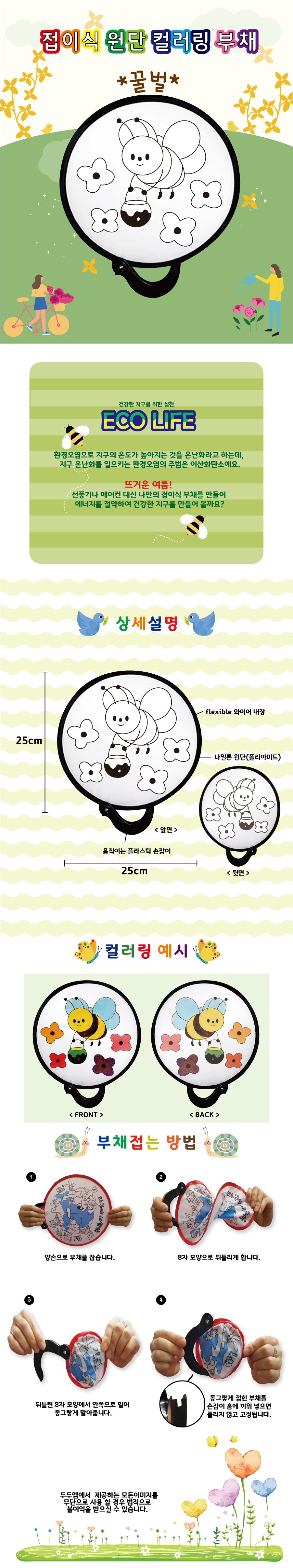 (DD) 두두엠 접이식 원단 컬러링 부채 (꿀벌)