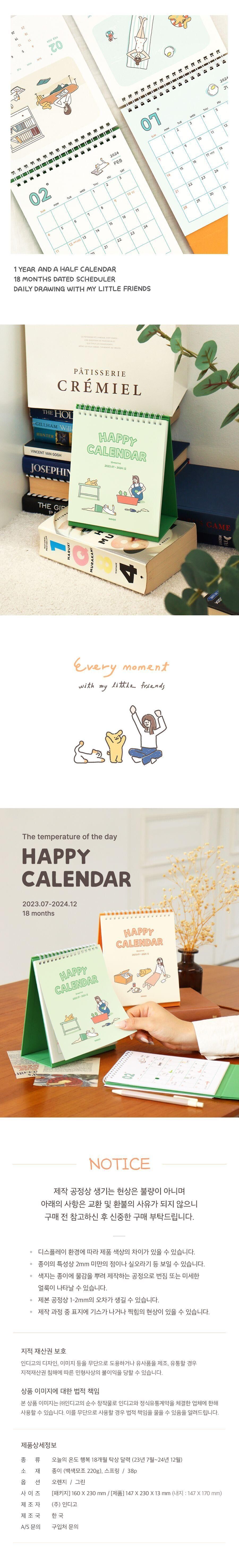 | 품명 및 모델명 | 오늘의 온도 행복 18개월 탁상 달력 (23년 7월-24년 12월) |