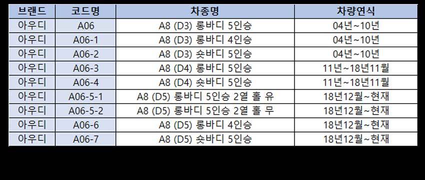 적용차종 상세정보 별도표기