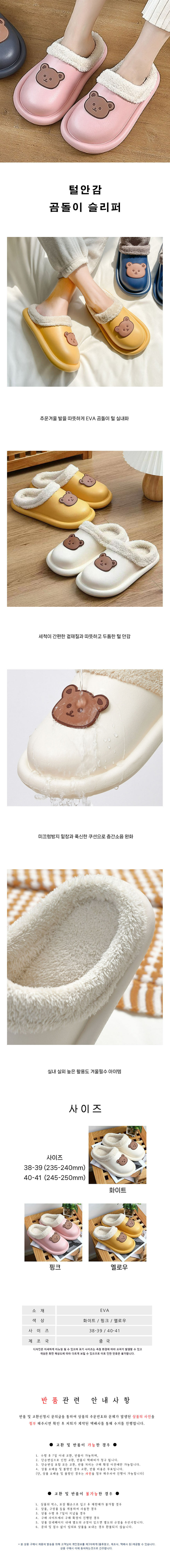 털기모 안감 곰돌이 방한슬리퍼 겨울 털실내화