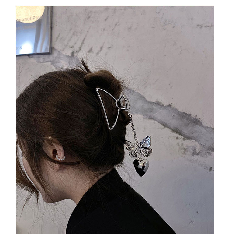 나비 하트 드롭 실버 집게핀 청담스타일 고급머리핀