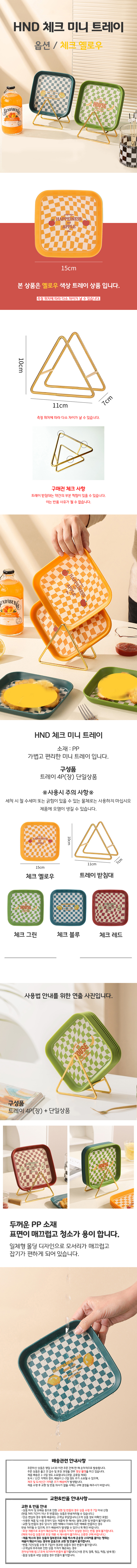 HND 체크 미니 트레이 옐로우 단품