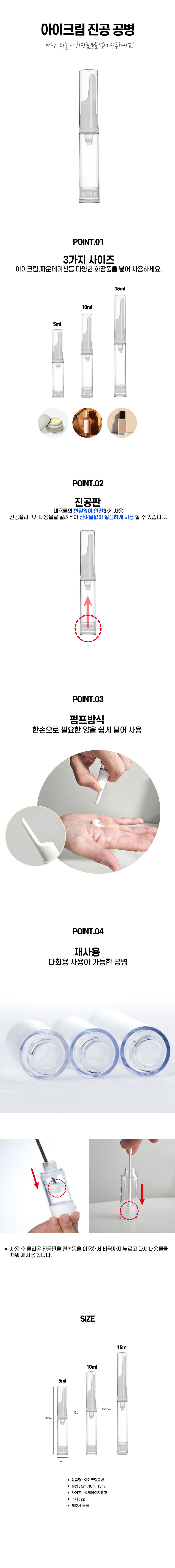 진공 화장품 크림 공병 케이스