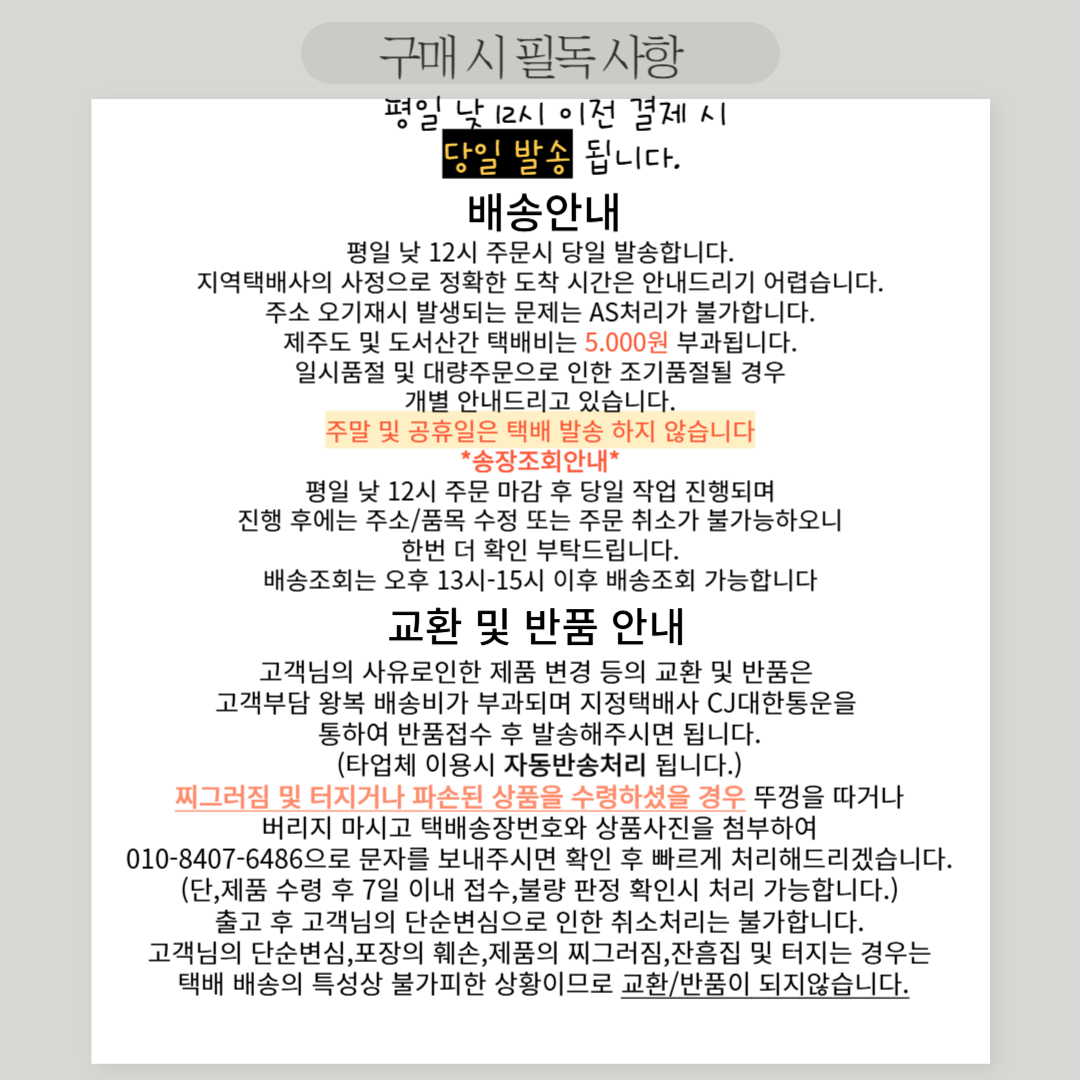 배송관련에 착오 없으시길 바랍니다.