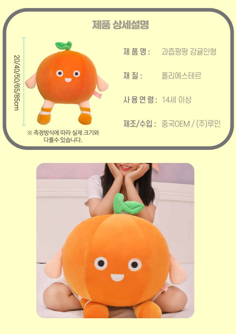 느낌상점 귀여운 제주 감귤 쿠션 40cm 인형 모찌 인형 탱자 탱귤 애착