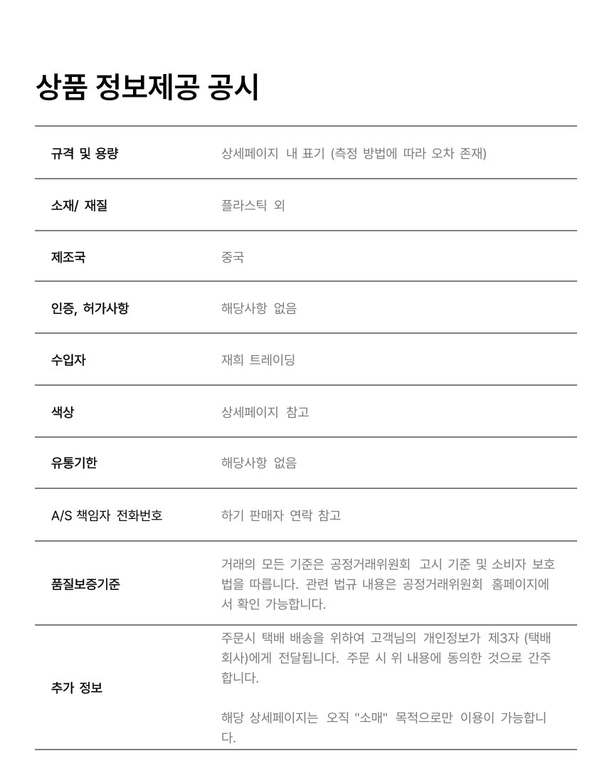 • 배송리드타임14시 이전 주문건 까지 당일 이내 발송
