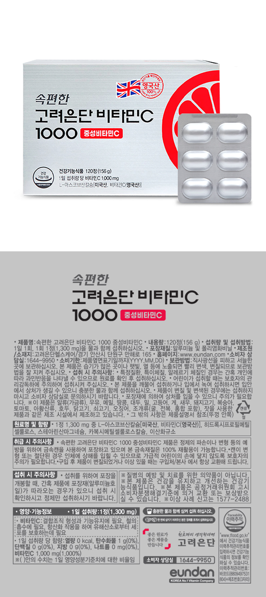 속편한 고려은단 비타민C 1000 중성비타민C 120정 X 2개 (8개월분)