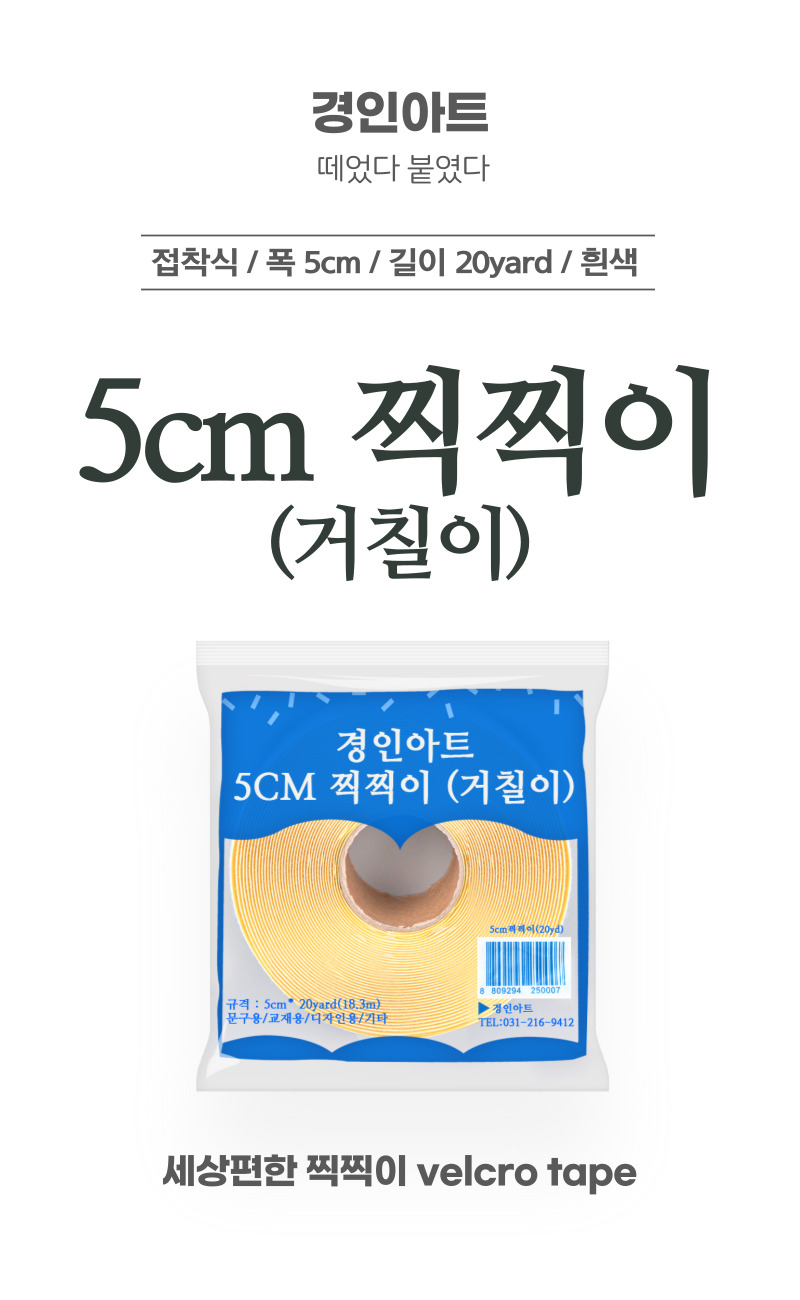 | 품명 및 모델명 | 벨크로 테이프/경인아트 5cm 찍찍이 흰색 거칠이 |