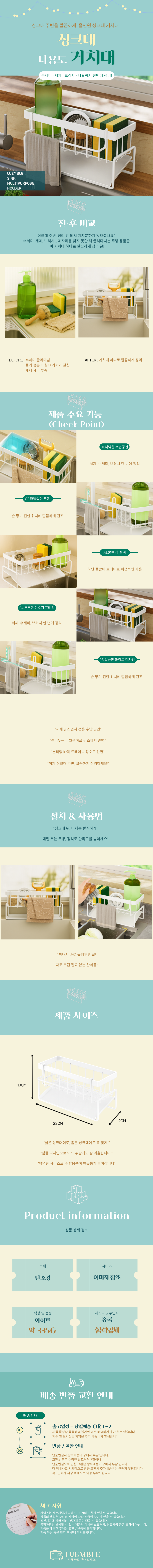 다용도 멀티 주방 수세미 거치대 세제 받침대 정리 보관 수납 물빠짐 걸이 건조대 싱크대