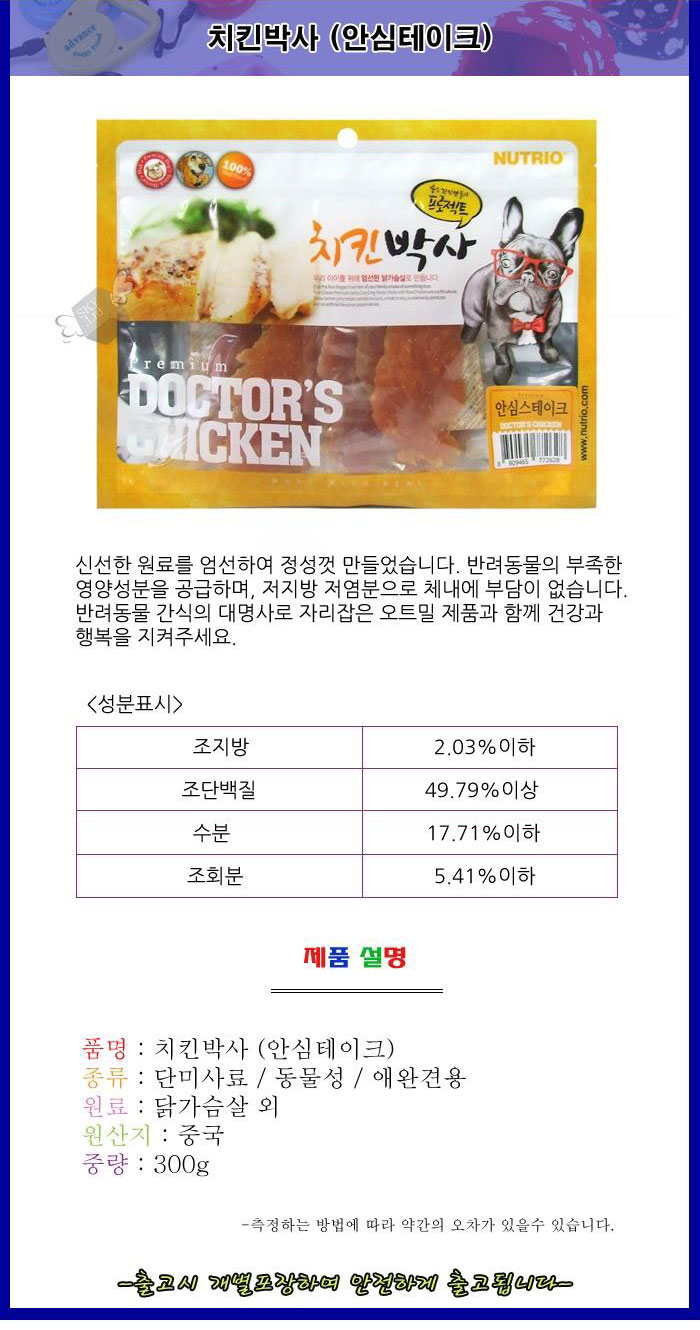 반려견간식 안심테이크 300g 간식류 애견맛있는간식