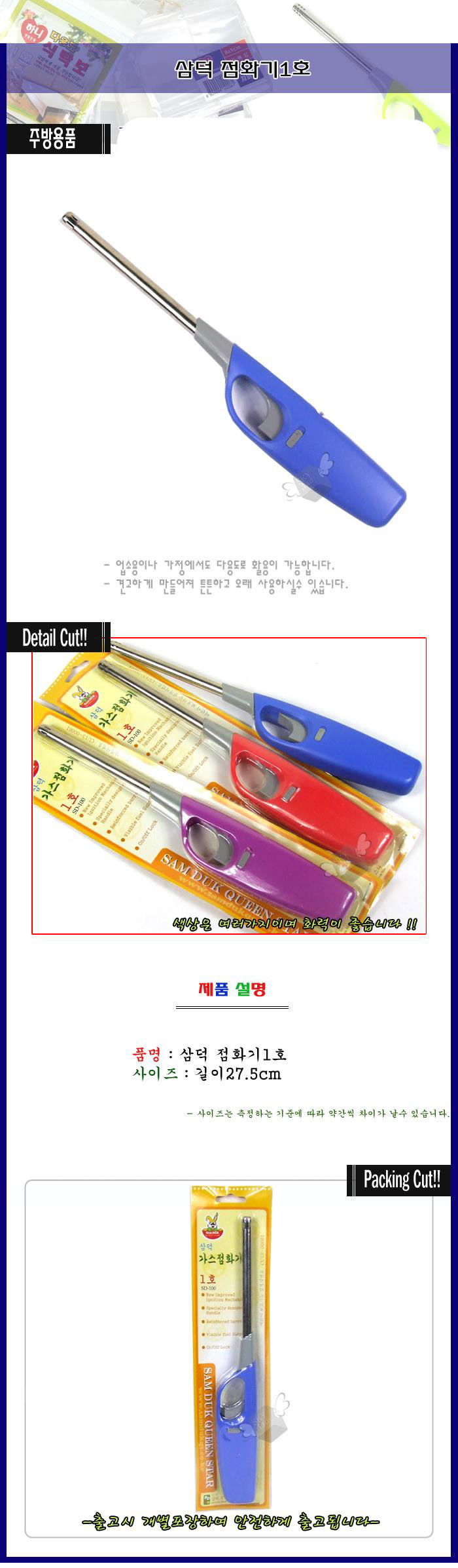 견고하여 튼튼한 가스점화기 1호-색상랜덤 식당용버너