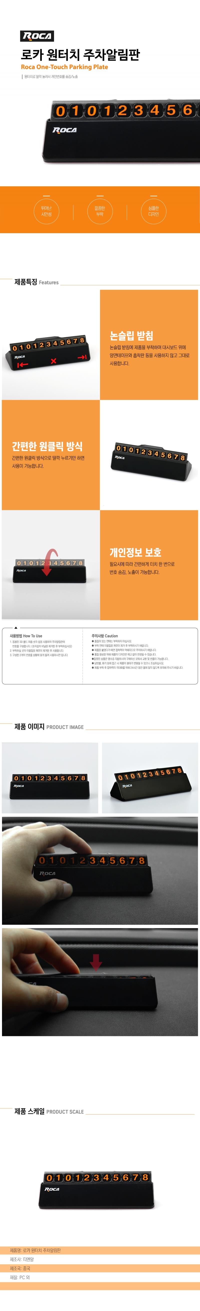 원터치 간편부착 주차 심플알림판 심플한주차번호판