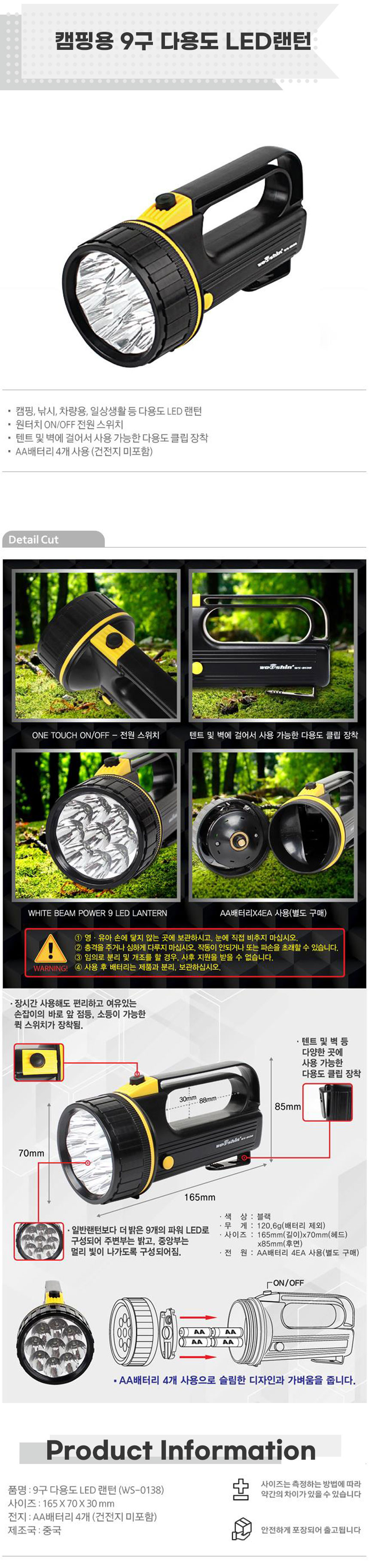 캠핑용 9구 다용도 LED랜턴 휴대용손전등 LED렌턴