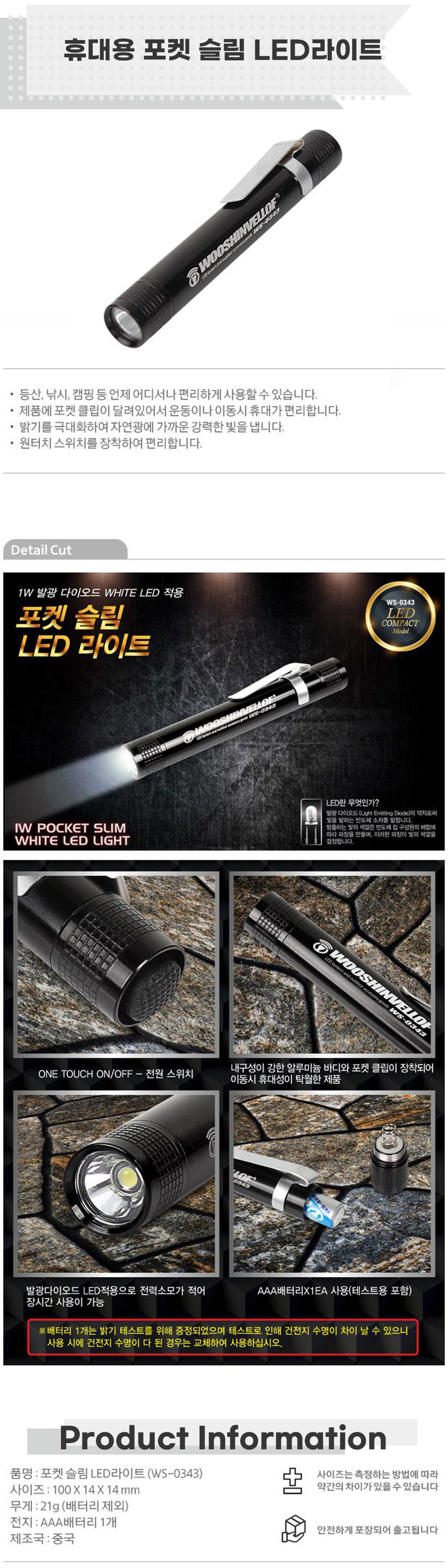 휴대용 포켓 슬림 LED라이트 LED랜턴 간편한손전등