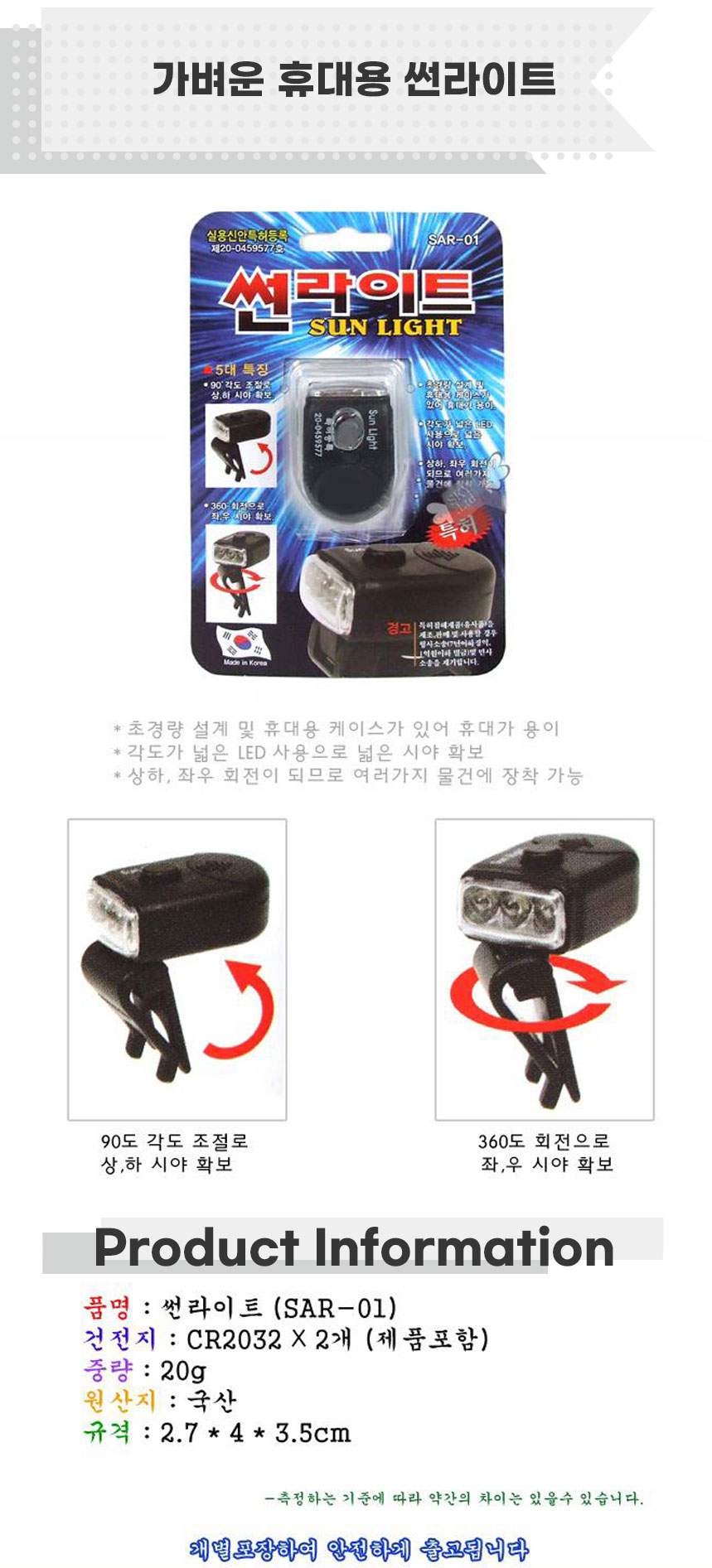 가벼운 휴대용 썬라이트 LED라이트 간편한손전등