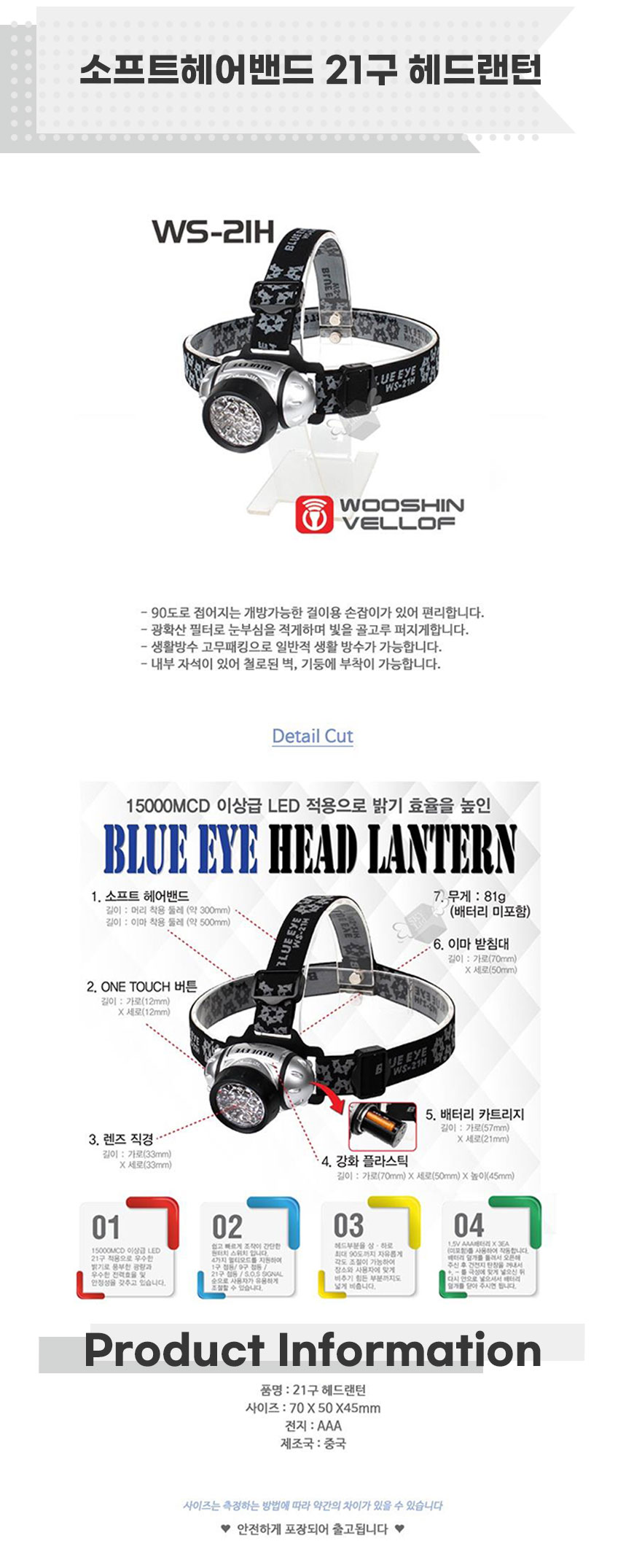 소프트헤어밴드 21구 헤드랜턴 x3개 등산헤드랜턴