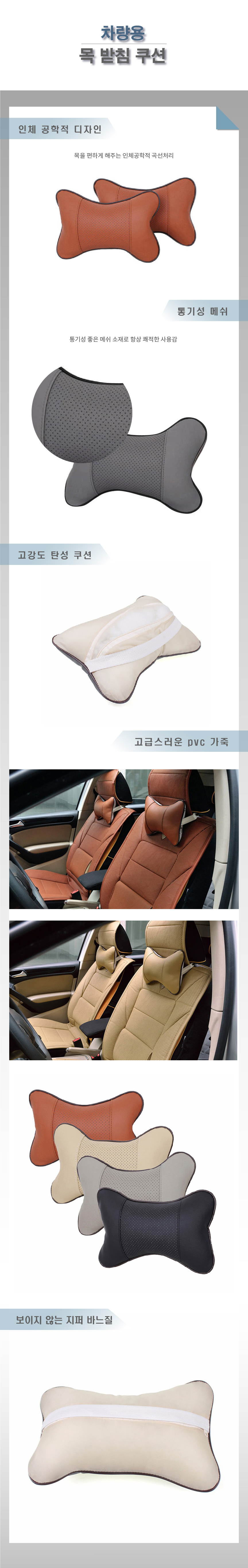 목베게 pvc 가죽 통기성 메쉬 자동차 목쿠션