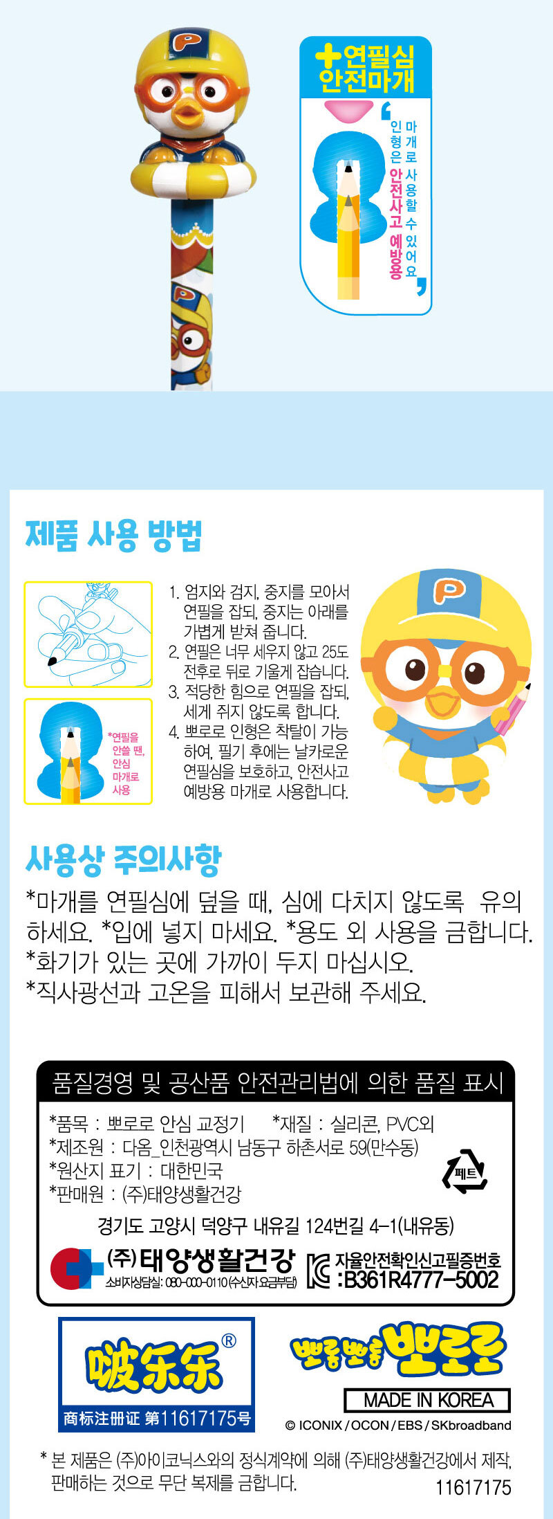 뽀로로 왼손 연필교정기(색상랜덤발송)