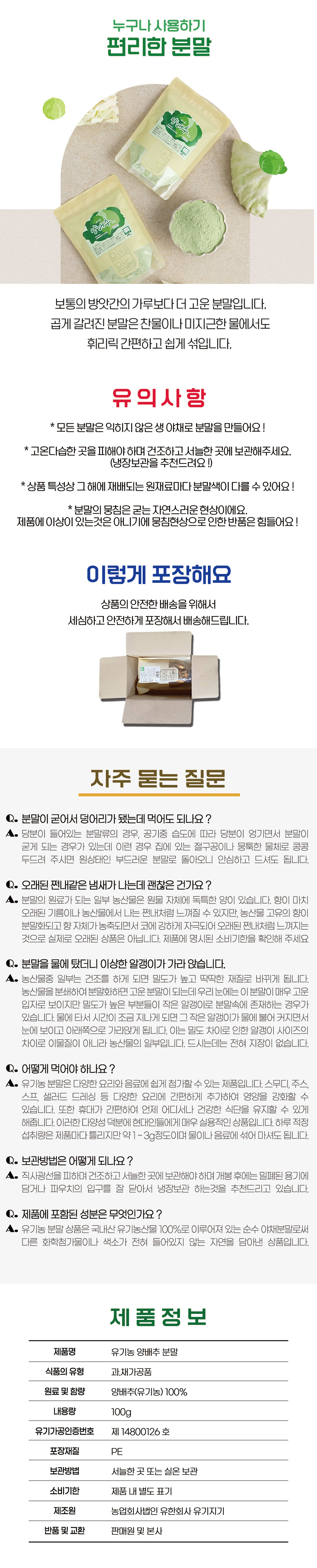 제품명 유기농 양배추분말