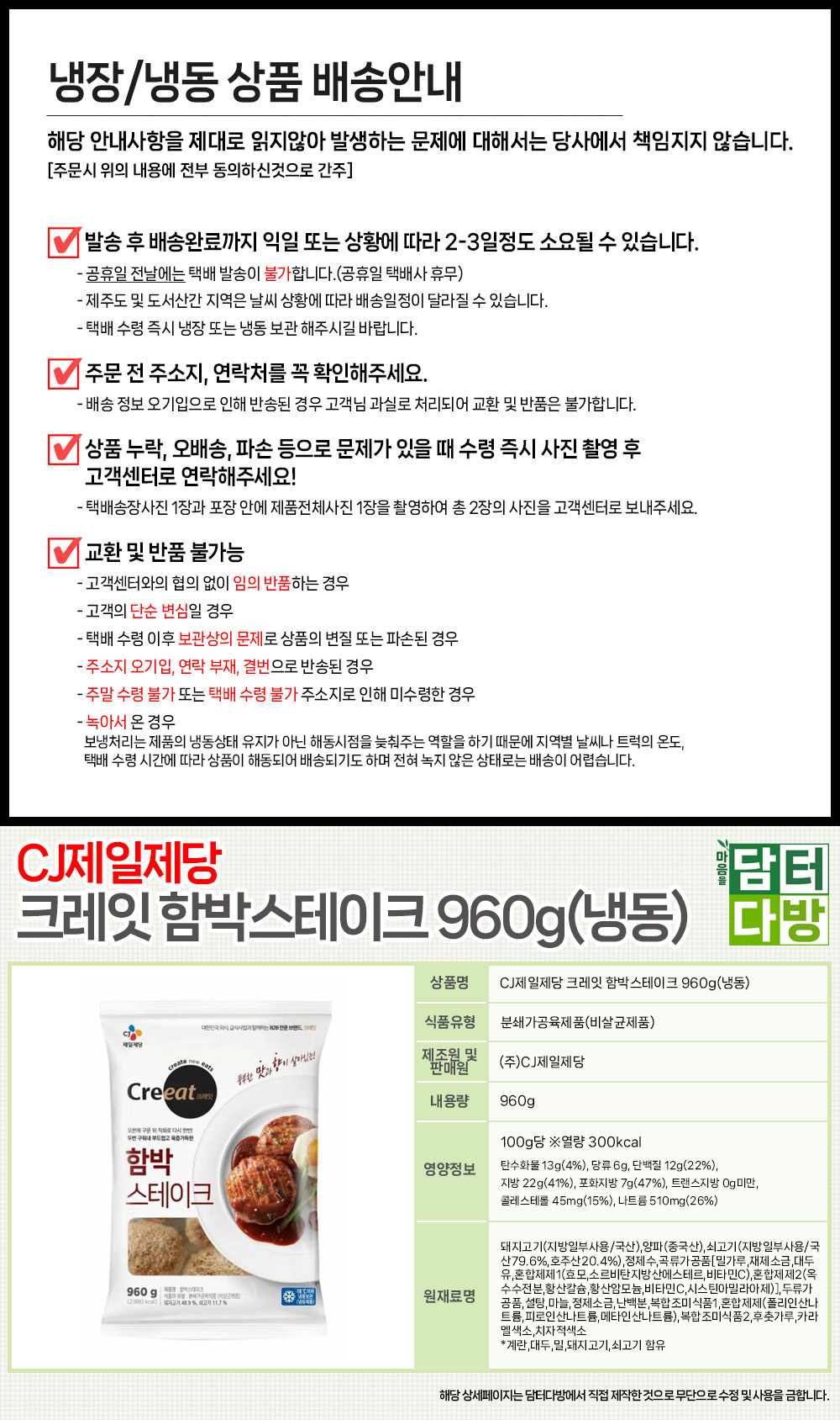 • 단순변심으로 인한 반품 시, 배송 완료 후 7일이 지나면 취소/반품 신청이 접수되지 않습니다.