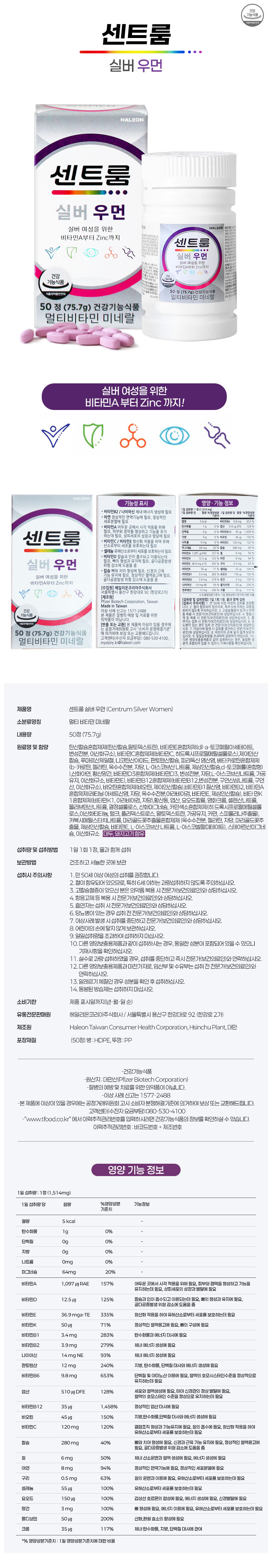 센트룸 실버 우먼 멀티비타민 미네랄 50정