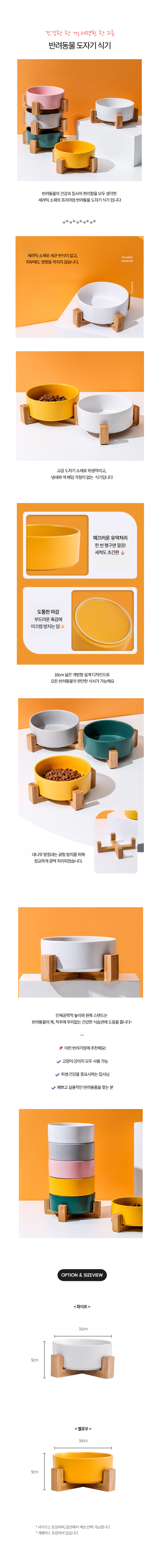 반려동물 나무받침 도자기 식기 강아지 고양이 밥그릇 16cm