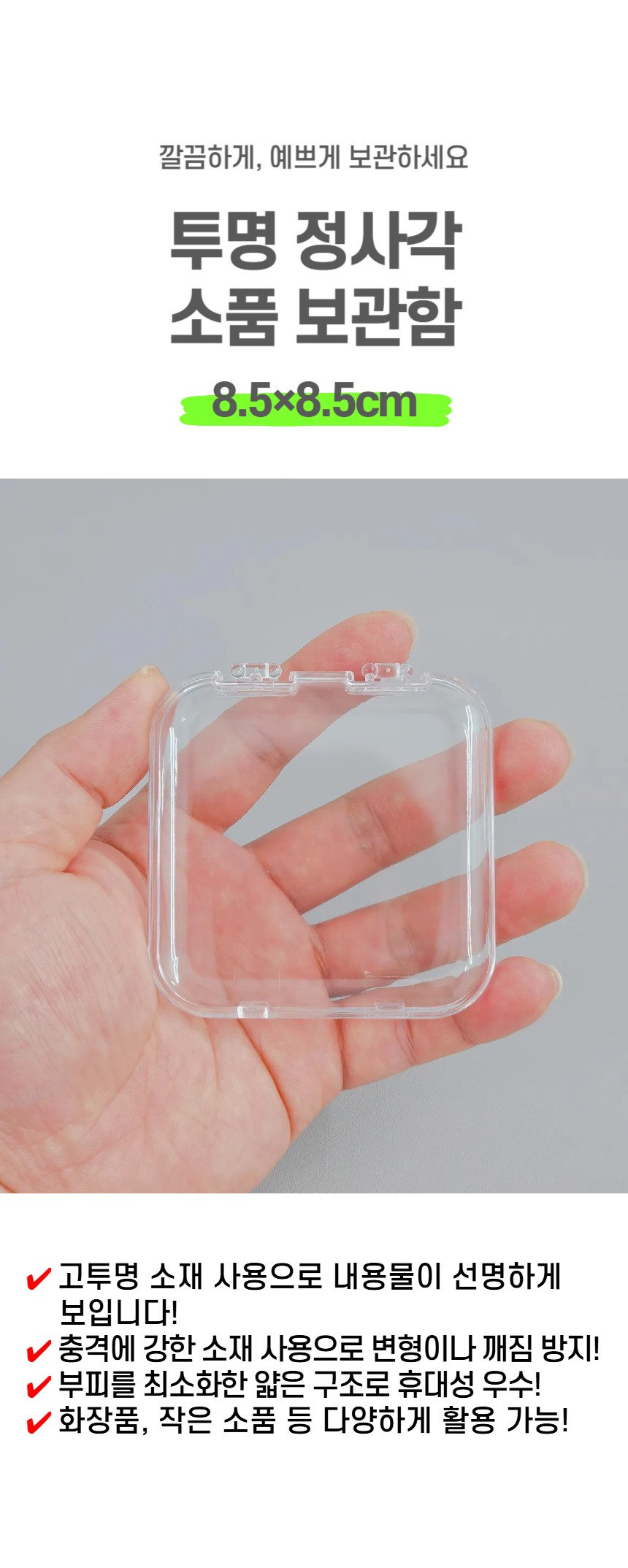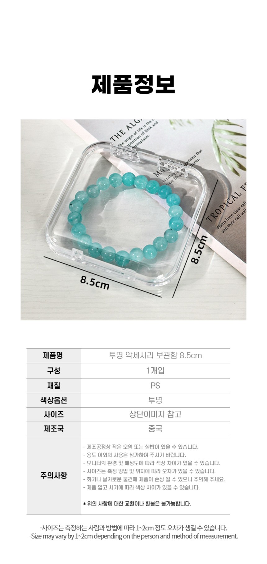 투명 사각 케이스 팔찌 악세사리 다용도 보관함 8.5cm