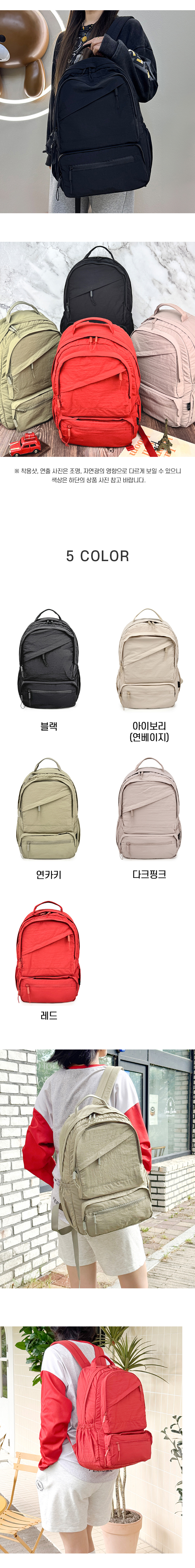 여성 대학생 학생 직장인 가방 여행용 백팩 레드