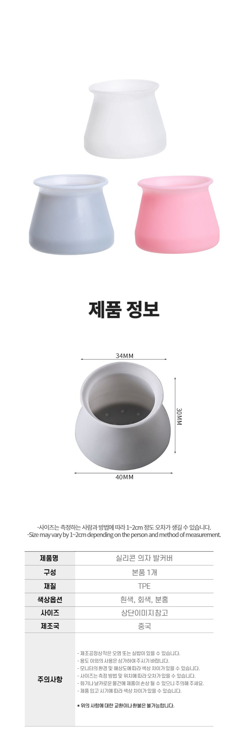 실리콘 식탁 의자 다리 소음방지 발커버 낱개