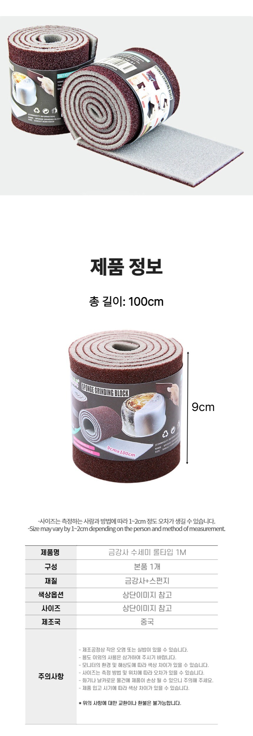 잘라쓰는 주방용 사포 롤 수세미 녹제거 금강사 1M