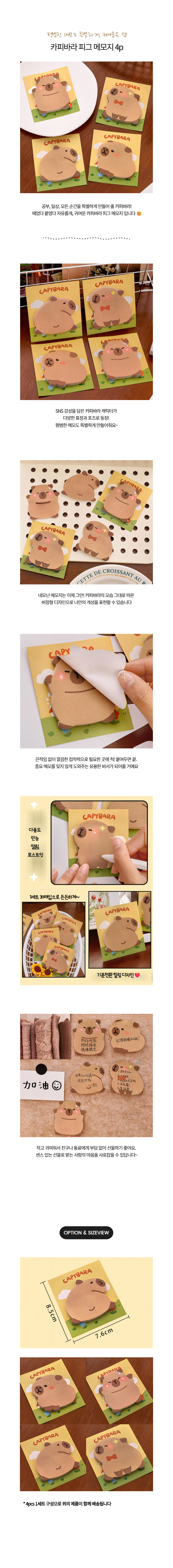 카피바라 피그 점착 메모지 4개 세트