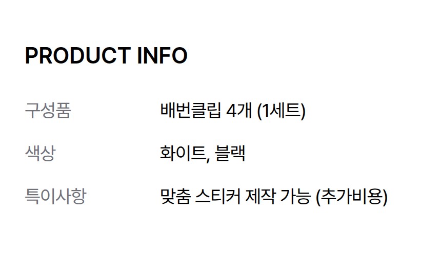 | 상품별 세부 사양 | 상세설명페이지 참고 |