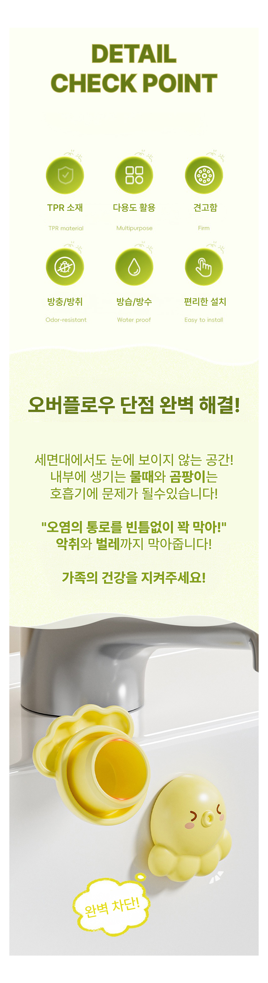 세면대 오버플로우 캡 배수구 마개 구멍 화장실 욕실 악취 냄새 물때 곰팡이 벌레 차단