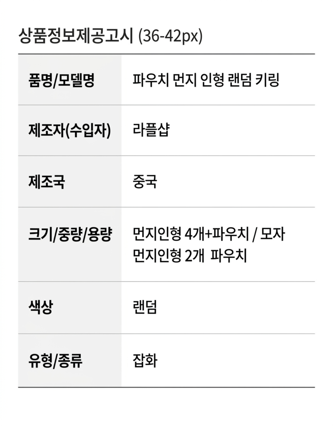 | 제조자 | 상세설명페이지 참고 |