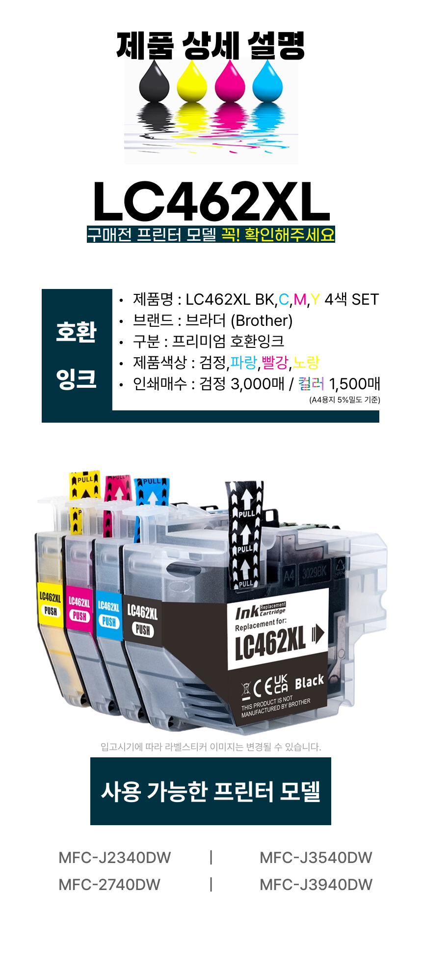 품명 및 모델명 품명:인쇄용 잉크 토너 / 모델명:LC462XL Set