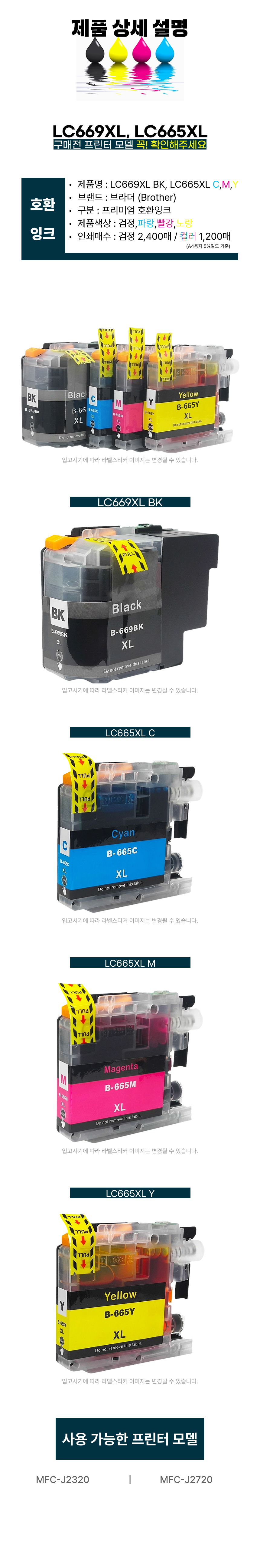 브라더 잉크 프린트 프린터잉크리필 호환 대용량 LC669XL LC665XL 검정 컬러