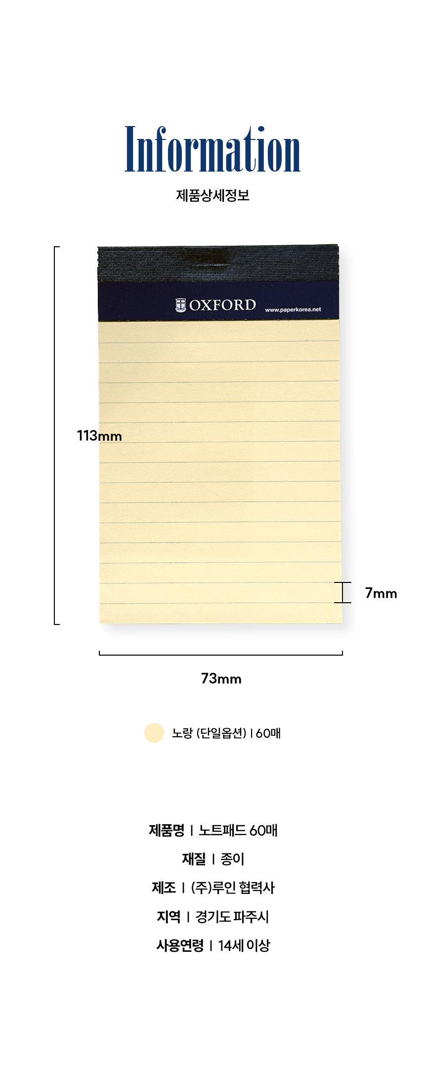 미니 리갈 패드 노트 60p 옥스포드 수첩 노랑 메모지 줄노트 필기 연습장 떡메모지