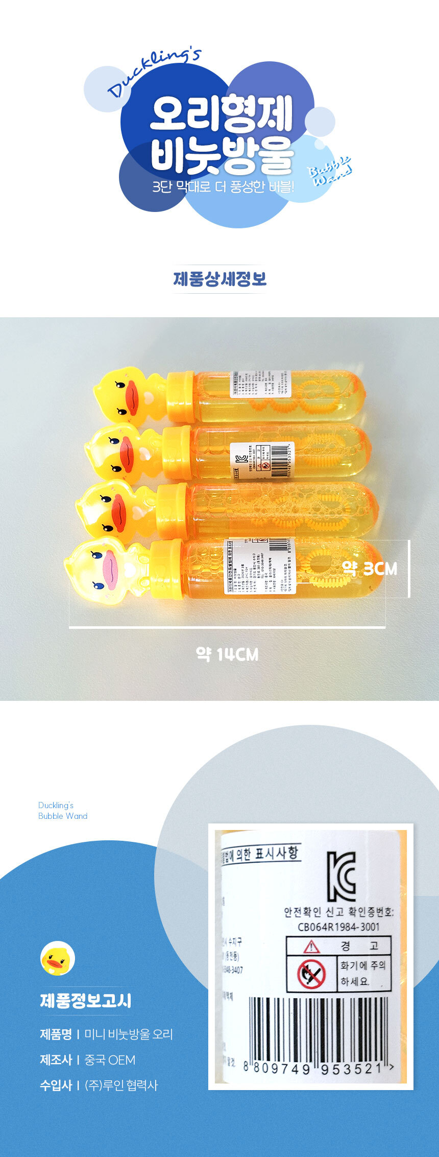 오리 미니 비눗방울 스틱 버블 봉 어린이집 구디백 유치원 선물 생일 답례품 행사