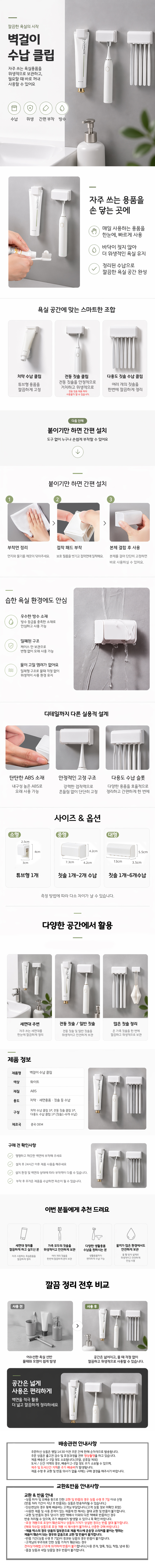 무타공 치약걸이 욕실 수납클립 벽부착 칫솔 면도기 홀더 거치대