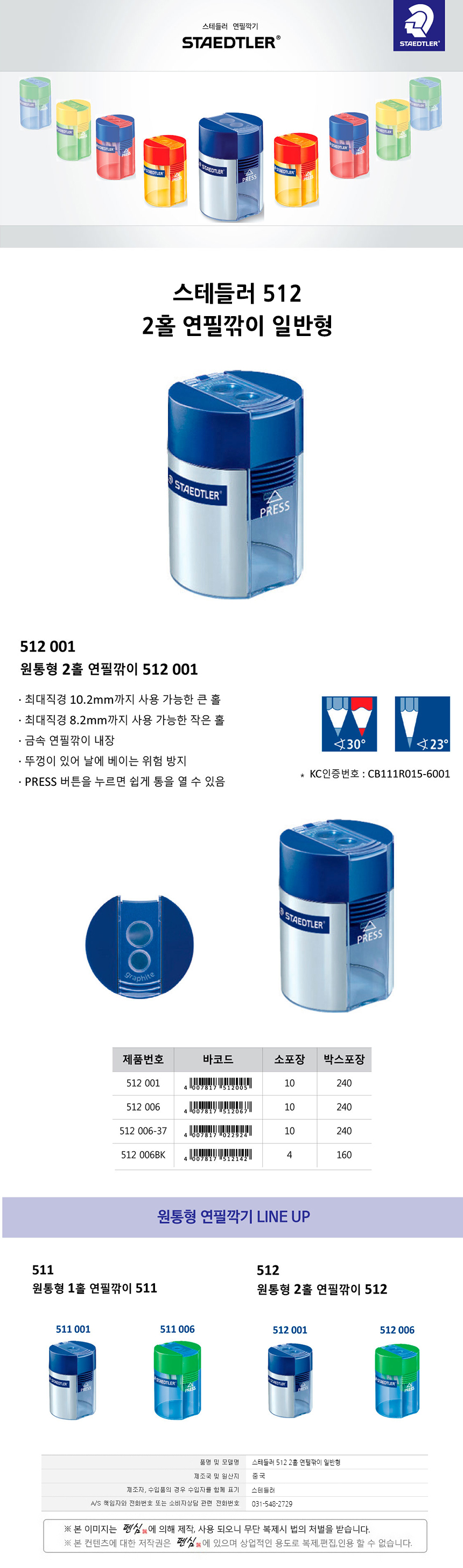 스테들러 511 1홀 연필깎이 칼라 랜덤1개